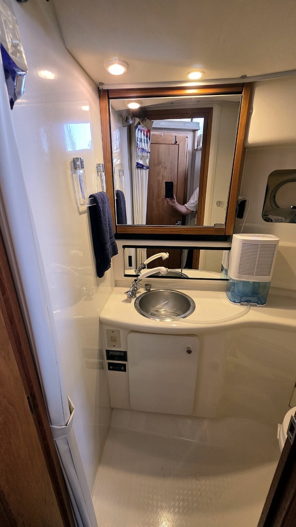 The flybridge is both comfortable and functional, protected by a bimini top and isinglass enclosure, making it a great space for both navigation and entertaining. The fully enclosed sundeck offers another inviting area for relaxation or socializing.