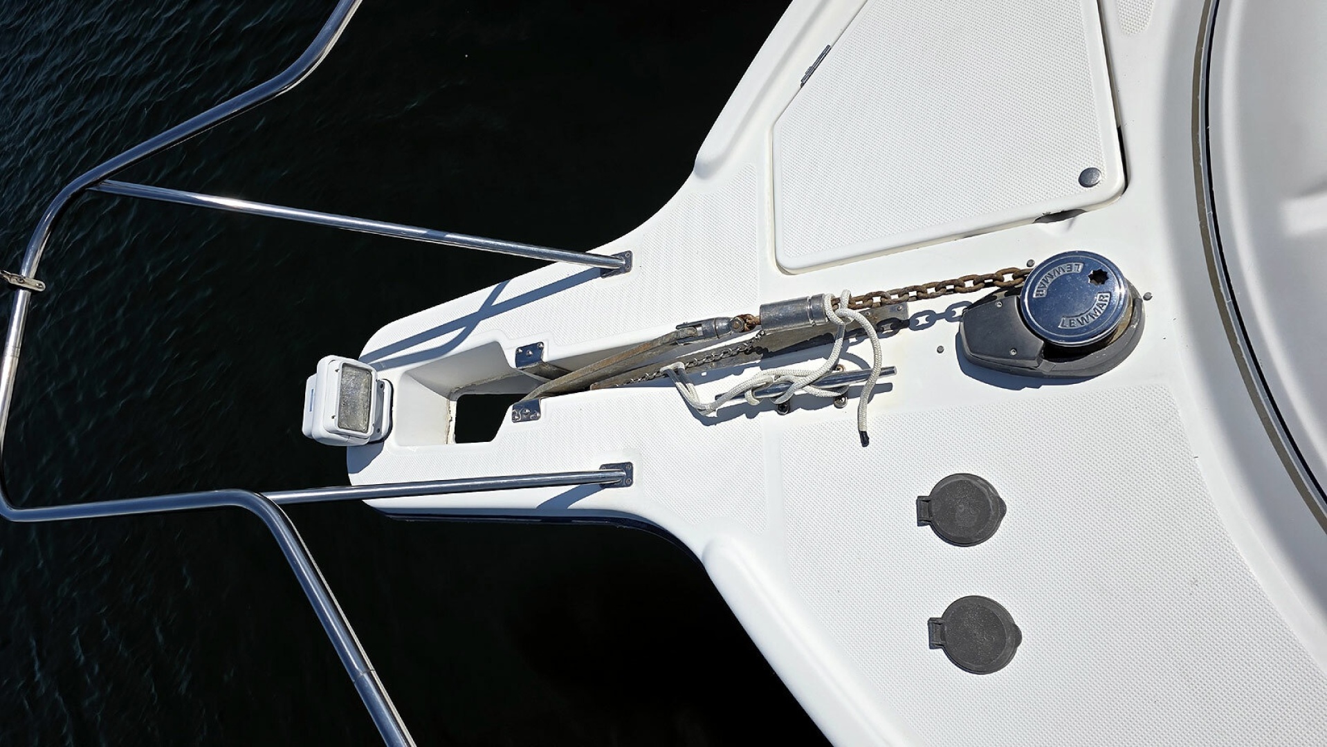 Powered by twin Cummins 270 HP engines, she also comes equipped with a NextGen 9 kW generator, a portable oil change system, and a St. Croix tender davit system, making onboard maintenance convenient and efficient.