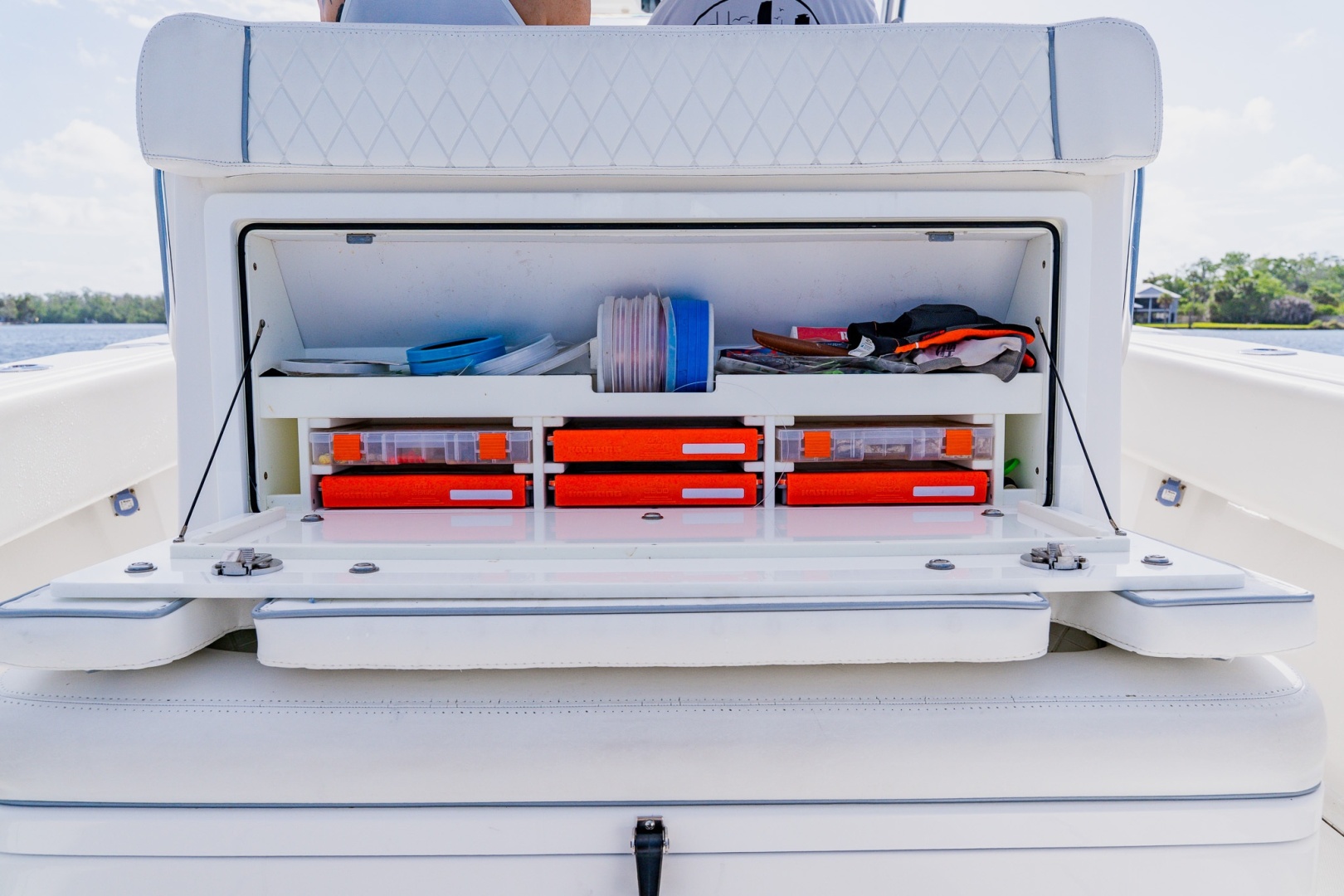 Center console with tackle station and cooler/fish box