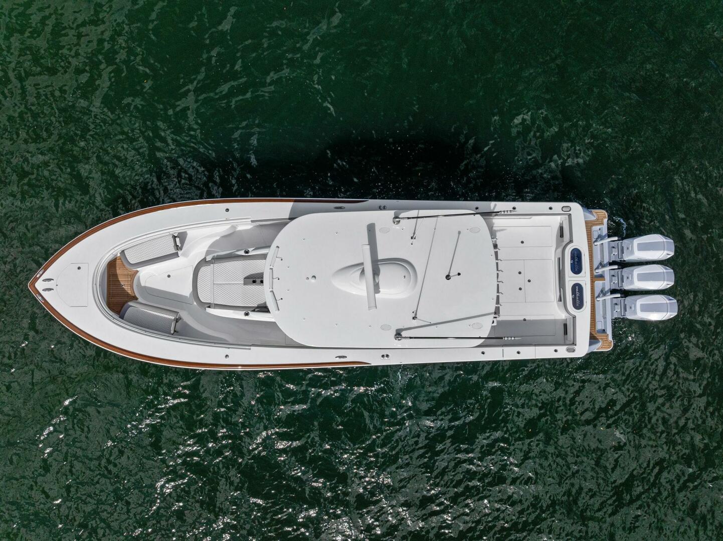 Like its stablemates, the V-46 is an outboard-powered center console that utilizes the patented Michael Peters Yacht Design (MPYD) double-stepped hull. "We've been extremely pleased with the performance of the first three boats," says Design Manager David Wilson. "Our close collaboration with MPYD has continued, and we expect the same high level of performance in this boat."
